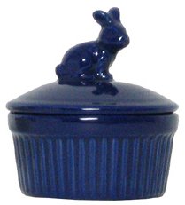 Now Offer the Most current Stoneware Pottery Blue Pate Dish with Rabbit Top Cover 4"D, 3.5"H Set of 2